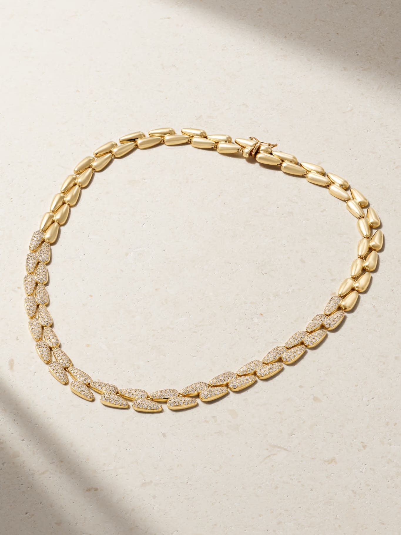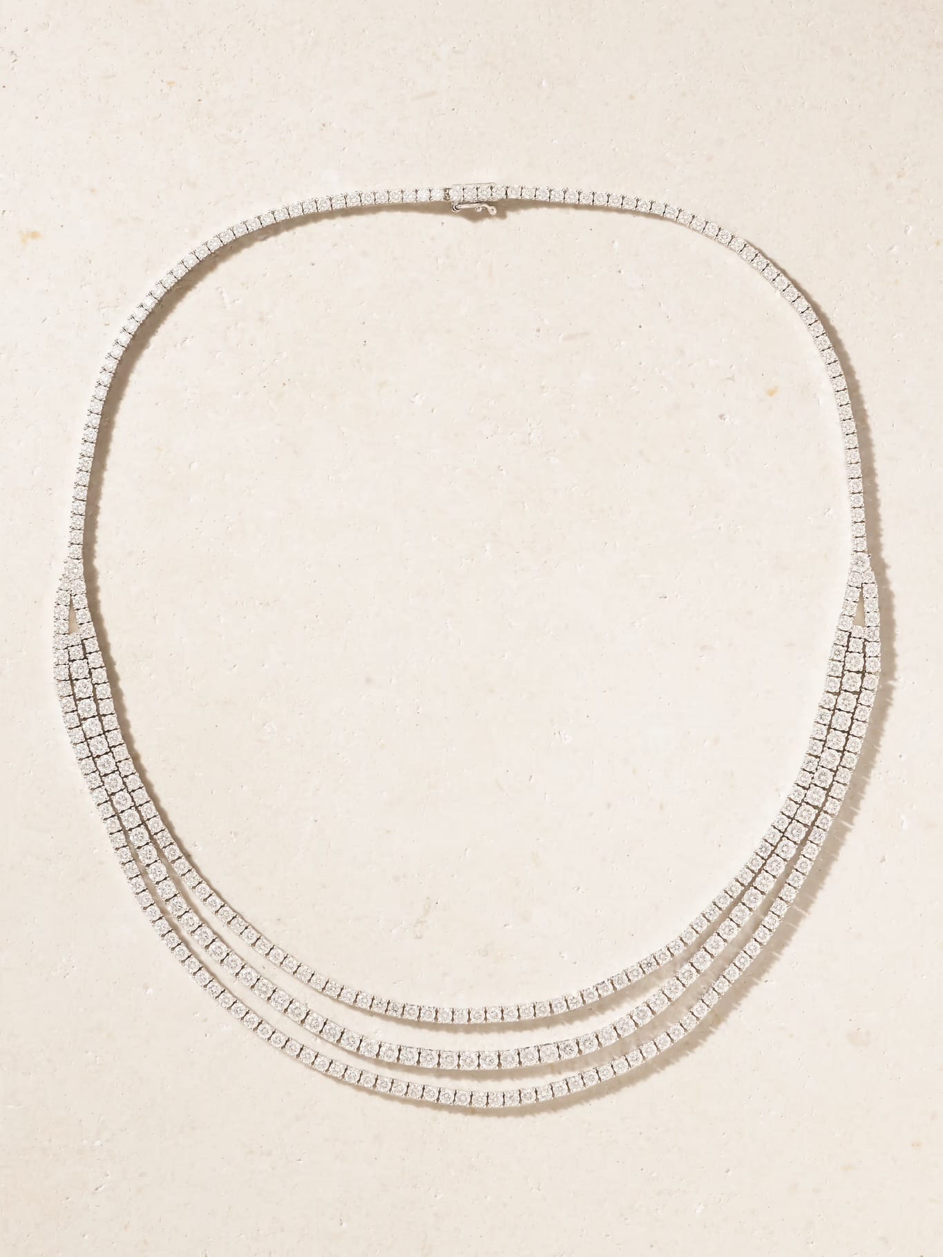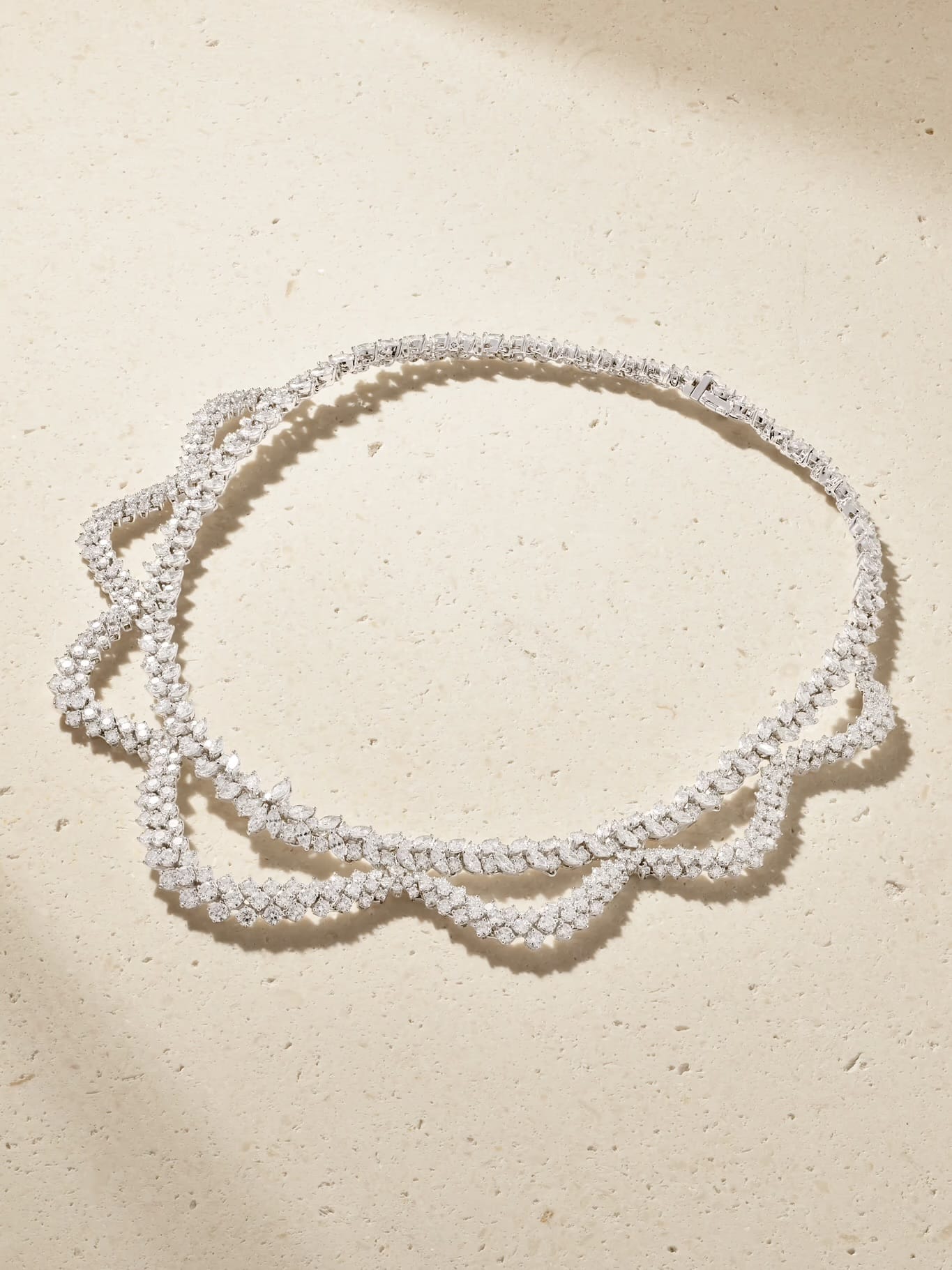 Known for artistic stone placement, this necklace offers a modern sparkle rather than traditional symmetry. It appeals to collectors who want diamonds that feel creative and distinctive while still timeless.